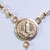 Pulseira em ouro de 19,2kts com malha cadeado, bolas de 2,3mms de diâmtero, medalha escapulário e cruz. Tem comprimento ajustável entre 19 e 21cms, com a cruz a medir 17x11mms, a medalha a medir 9mms de diâmetro, as bolas 2,3mms e pesa +/-2grs.