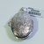 Medalha de abrir em prata, formato redondo, gravada, tipo relíquia, com reentrâncias nas quais pode colocar fotos, esmalte/foto ou simplesmente utilizá-lo como caixa. Tem 25mms de diâmetro e pesa +/-6grs.