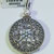 Medalha oval em prata, de abrir e com trabalho lindíssimo e invulgar, com aplicação de marcassites e turquesas. Funciona como caixa relíquia, com reentrância na qual pode colocar fotos ou simplesmente utilizá-lo como caixa. Tem comprimento total de +/-35mms com a medalha a medir +/-25mms e pesa +/-7grs.