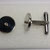Botão de punho redondo em prata, com acabamento polido e ónix côncava ao centro. Tem 16mms de diâmetro e pesa +/-9,5grs.