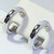 Argolas em prata em formato côncavo e fecho em charneira que facilita a aplicação na orelha. Têm um diâmetro de 11mms, largura de 3mms e pesam +/-2grs.