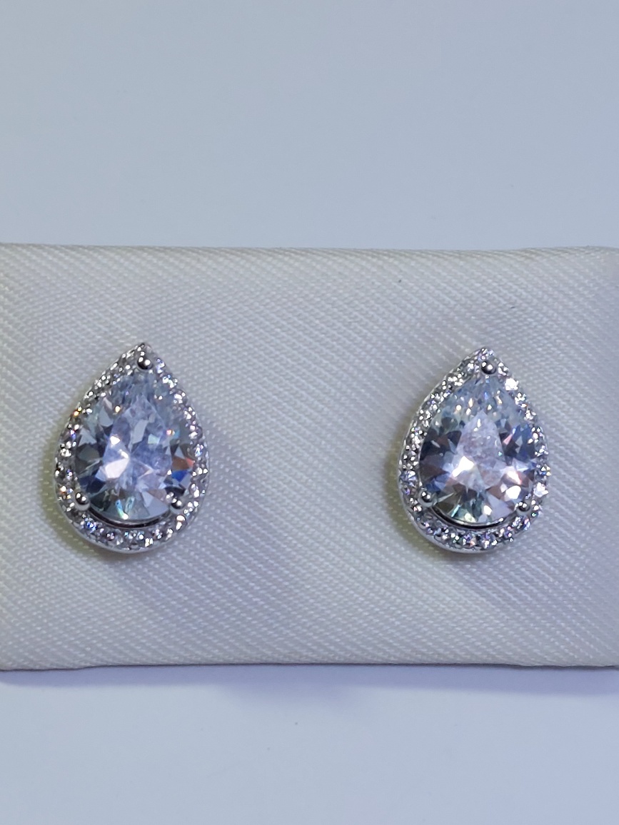 Brincos elegantíssimos em prata com formato gota de zircónias. Tem um tamanho de 13mms e pesa +/-3,6grs.