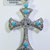 Original cruz em turquesa reconstituída e estrutura em prata. A cruz em pedra tem uma dimensão de 20x20mms e tem um peso em prata de 1,3grs.